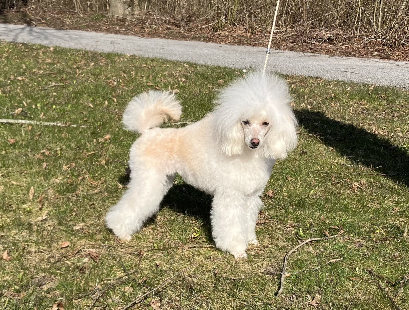 Vi köpte vår första dvärgpudeltik "Skuggan" från kennel Viking Line i Hofterup. Skuggan var en underbart glad och tillgiven liten valp. Hon ställdes ut ett antal gånger och blev BIR valp som liten och fick senare också ett CERT på officiell utställning. Hon åkte aldrig hem utan rosett. Vi var nybörjare på det där med hundutställning och i synnerhet med all klippning och pälsfix som ska till för att lyckas med utställning av pudlar, så vi var mycket nöjda med vad hon kunde prestera med vår tafatta hjälp.